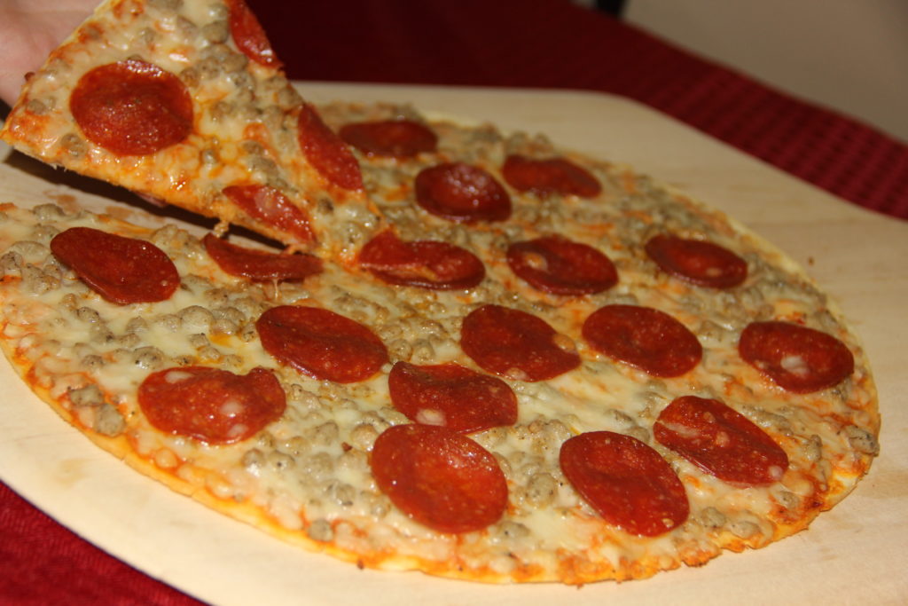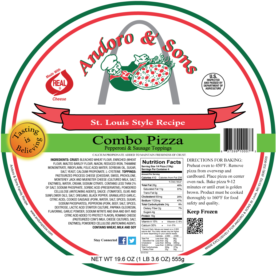 Andoro & Sons St. Louis Style Pizza.. a thin crust topped with Pepperoni & our crumbled Sausage along with our unique 5 St. Louis Style Pizza Cheese blend, makes the ultimate combo.  It arrives frozen and fresh.